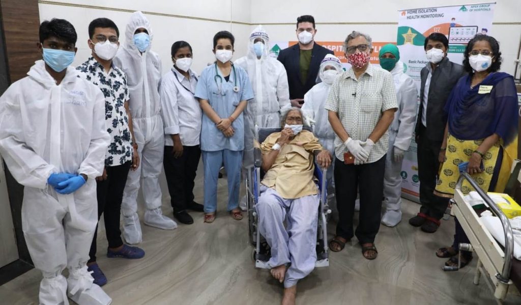 Mumbai: Globally, the corona virus is causing such havoc and the situation is not coming under control. India is at number three in the most infected cases in the world, while it is number four in the highest number of deaths. India is the third country greatly affected by coronavirus and with most active cases of COVID19. The total number of positive coronavirus cases now stand at 3,624,613 but at the same time the recovery rate in India is increasing rapidly. Maharashtra remains the worst-hit state in India but there is good news also coming from different parts of the state where 90 plus year old citizens recovered from Coronavirus. A 96 year old woman named Mrs. Malti Durve with old ILD (Interstitial Lung Disease) recovers from Covid-19 after 19 days ICU stays in Apex Hospital,Mulund has successfully fought back with coronavirus from Mulund,Mumbai. Curing the woman who was already suffering from age-related problems and Corona positive condition posed a big challenge for medical professionals in Apex Hospital, Mulund. The woman’s road to recovery was a tough one, recalled one of her family members. Dr. Hardik Thakker Consultant MD Physician, infectious disease and COVID expert from Apex Hospital, Mulund Said, “This is an interesting and unique case of 96 year old female patient (resident at Gavanpda -Mulund east) with lung damage due to interstitial lung disease, presenting with COVID 19 pneumonia and respiratory failure. She came to us at Apex Hospital, Mulund on 9th august 2020 for cough, breathlessness and low oxygen saturation. She was urgently admitted to ICU and put on BIPAP ventilation. HRCT thorax shows 45% lung damage. Her condition was critical. She was breathless and unconscious. Her family had given up hopes. They did not want advanced treatment for her, no ventilator. Hence they signed the DNR form. Despite all odds, with sheer grit, determination and a precise treatment protocol we were victorious in getting her conscious, off bipap. We transferred her out of ICU after 19 long days. Another 3 days in the general ward and she turned negative for COVID 19. She was then discharged to home with nasal oxygen on the 22nd day.”