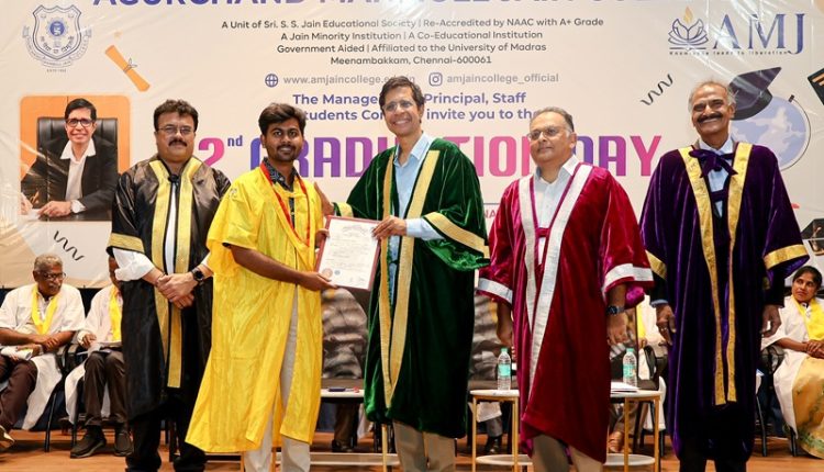 Chennai : Agurchand Manmull Jain (A.M. Jain) College, an NAAC A+ accredited institution, celebrated a significant milestone in its long-standing tradition of academic excellence with its 72nd Graduation Day Ceremony for the aided stream, honouring the achievements of 537 students from the 2023-24 batch across diverse undergraduate and postgraduate programmes.
