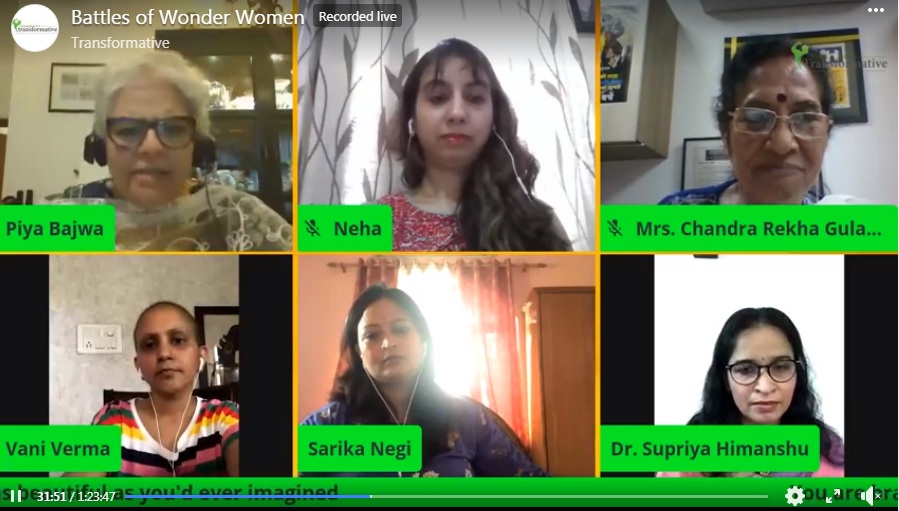 “The Battles of Wonder Women” was the theme of this exclusive Live Patients Panel Discussion that recently happened. In the quest of bringing forward the pain, the dilemma, the emotional ups & downs, and the baggage experienced by ‘She’ patients across the country, Transformative.today, 750AD Healthcare’s platform, brought together wonderful panelists who were Cancer survivors, Covid recovered, Thyriod recovered and going through chemotherapy. The women who participated in the Panel were Neha Bahri, Vani Verma, Chandra Rekha Gulabani, PiyaBajwa and Sarika Negi. From being housewives to being at the forefront of high-pressure jobs, they didn’t hesitate in sharing their personal experiences, and gave some realistic and important tips to help viewers stay positive. They appreciated Patients Review Program, an off-beat initiative of Transformative where patients get an opportunity to review doctors and hospitals or any healthcare facilities based on their experiences.
