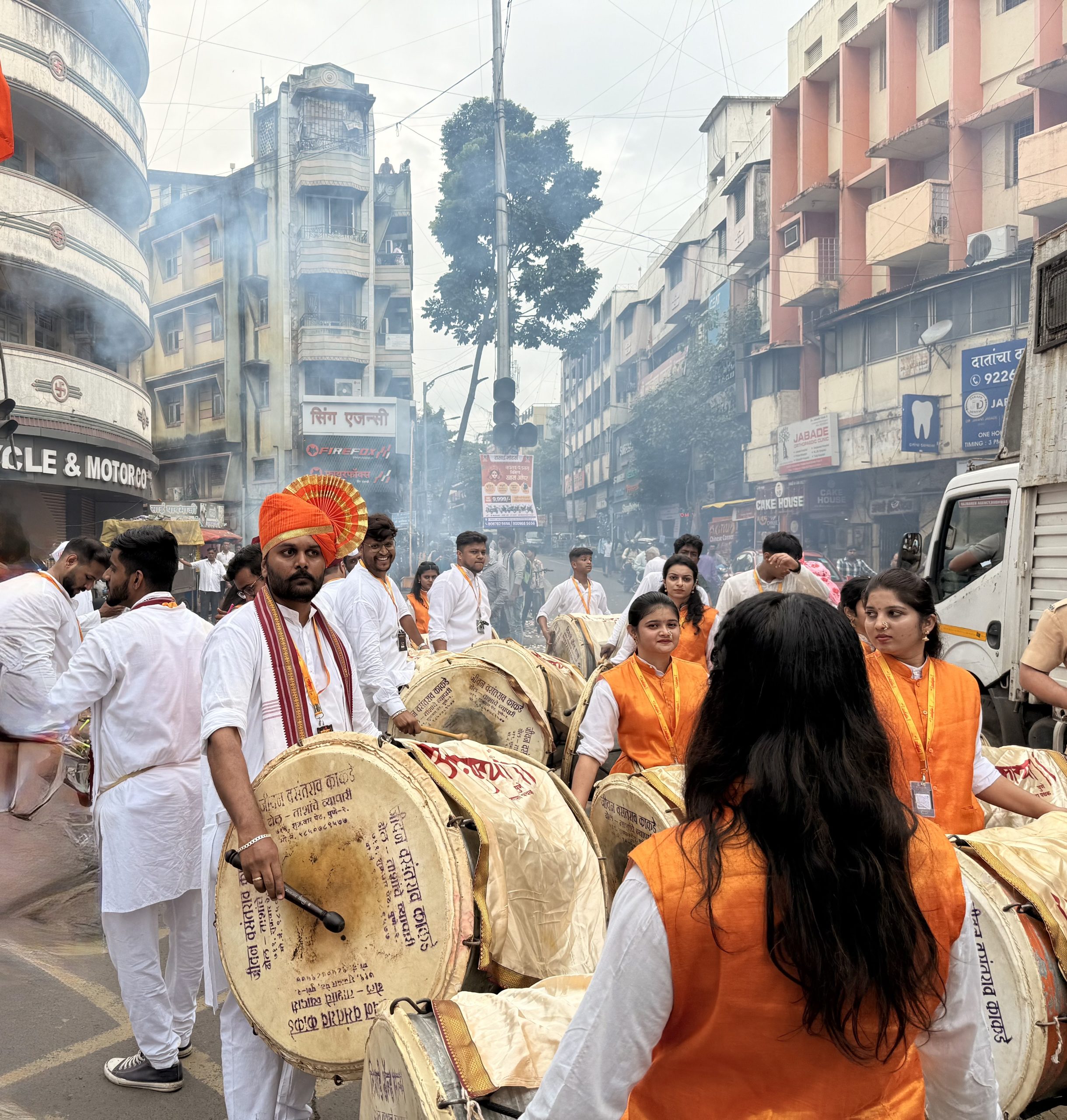 Akshay Mane, a dhol vadak with Aadimaya Pathak, civil engineer by profession and resident of Pune, said : “ Pune’s festive season is incomplete without the echoes of dhol-tasha. Playing the dhol is not just about rhythm, it’s about carrying forward a legacy. In today’s time, when electronic beats are everywhere, the raw energy of dhol-tasha connects people to their roots. Every beat feels alive, it has a soul. ”