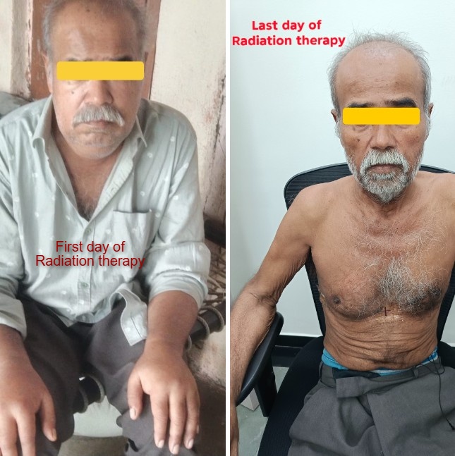 Dr. Abhishek Purkayastha further added, “The patient was treated using Volumetric Modulated Arc Therapy (VMAT), delivering 40 Gray radiation in 16 fractions. This advanced technique allows us to deliver highly precise radiation to the tumor THROUGH 360-DEGREE ROTATING ARC METHOD while protecting surrounding vital organs such as the heart, lungs, and major blood vessels. The patient showed a very good response to the treatment, with complete relief from breathlessness, cough, and swelling. He required 16 sessions, and follow-up scans showed a reduction in the size of the tumor. Such advanced radiation technologies have made it possible to manage even complex and advanced cancers more effectively, improving survival for patients.”