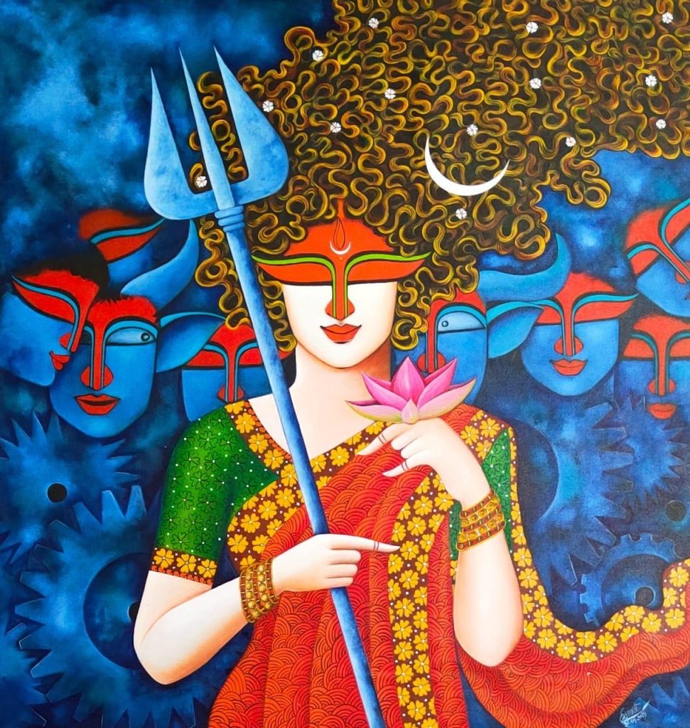 For admirers of landscapes, the art fair offers a wide variety – from abstract and semi-abstract landscapes to romantic, pastoral, floral, seasonal, and cityscapes. Highlights include landscapes by Varsha Patil, Ravishankar T and Kartikeya Khatau, flowerscapes by Ria Das, Vatsala Thakur, Sunandini Jayant, Dr. Jessica Serrao, and Gagandeep Singh Kochar, oils by Ashwin Kumar and Vasundhara Nanavati, and semi-abstract interpretations with diffused light by Rupali Mansinghka.