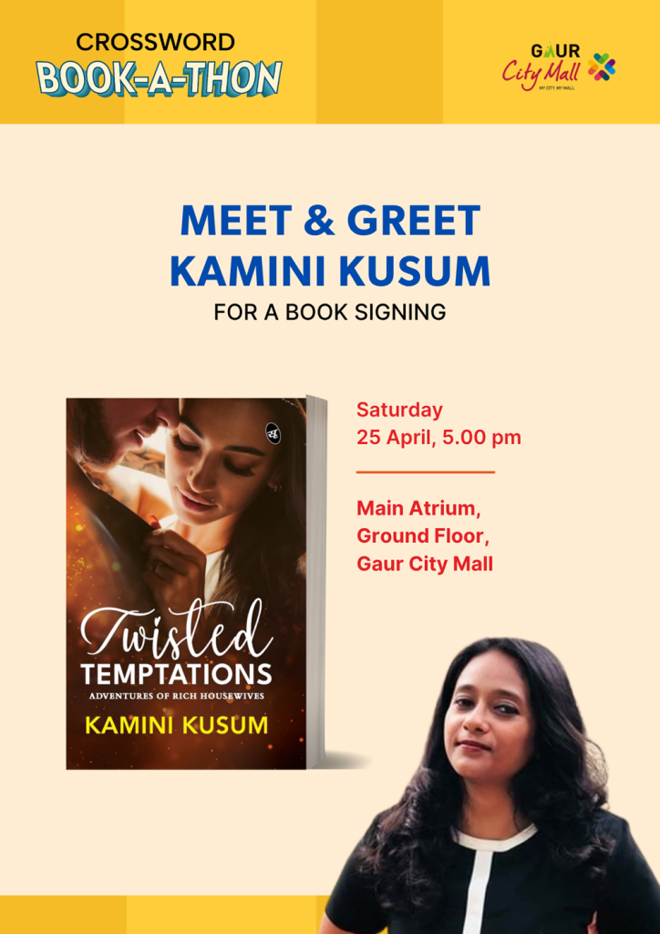 An engaging literary interaction awaits as author Kamini Kusum meets readers for an intimate session followed by a book signing. Centered around her book Twisted Temptations, the session will begin with a brief introduction and reading, offering insights into her storytelling process and thematic inspirations. Attendees will have the opportunity to interact directly with the author, gain a deeper context of her work, and get their copies personally signed, making it a memorable experience for literature enthusiasts.