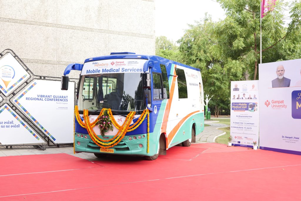 Dr. Ganpat I. Patel, President & Patron-in-Chief, Ganpat University said, “This Mobile Medical Unit, launched in collaboration with Aster DM Healthcare Ltd., embodies our commitment to serve society through education and healthcare. Together, we aim to reach every corner of rural India and deliver quality healthcare to those who need it most.”