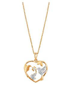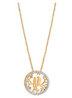 Does your girl love nature? This beautifully crafted nature inspired love birds pendant is an ideal gift for your better half. The round pendant with diamonds along with a 3D effect of the love birds sitting on the leaves, gives it a perfect romantic look.