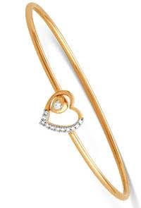 If your girl is the romantic type, she’s sure to love jewellery with a heart theme.The unique heart-in-a-heart design is one of the key highlight of this piece. Pick this delicate heart shape bangle studded with diamonds and a single diamond in the center, which surely can never be out of style!