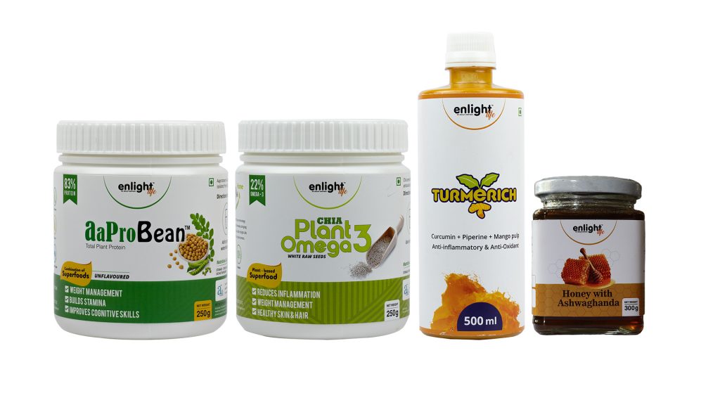 Enlightlife provides a customised wellness solution for various age groups and aids in weight and diabetic management, monitors bowel health, fights bad cholesterol and stress, detoxifies the liver, manages inflammation and arthritis, and, provides healthy skin and hair. These products are vegetable and plant-based that are loaded with plenty of antioxidants, fibre, protein, manganese, calcium, Omega 3 fatty acids and other important nutrients. Most of the Enlightlife products are in powder form for easy consumption.