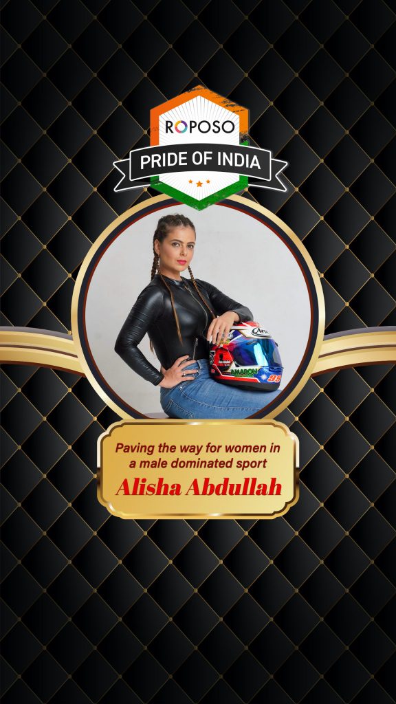 Roposo, India’s No. 1 short video app, welcomes Alisha Abdullah under the highly successful ‘Roposo Pride of India’ program. The program recognizes remarkable Indians by providing them with a platform to mentor and inspire fellow Indians. Alisha, India’s first female national racing champion truly embodies the characteristics of a legend of a champion, on and off the racetrack.