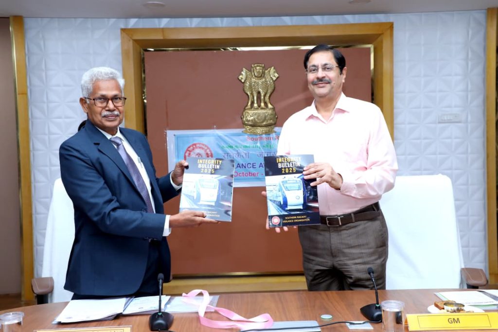 As part of the observance, the Vigilance Wing of Southern Railway released Integrity Bulletin 2025, an in-house publication disseminating best practices, case studies, and lessons learned from vigilance cases and preventive checks. The inaugural event, organised by Southern Railway Headquarters and streamed virtually at the Divisional Office, Thiruvananthapuram, had Hon’ble Justice Shri P. Rajamanickam, Chairperson, Lokayukta, Tamil Nadu, as the Chief Guest, and Shri R. N. Singh, General Manager, Southern Railway presiding over the function.