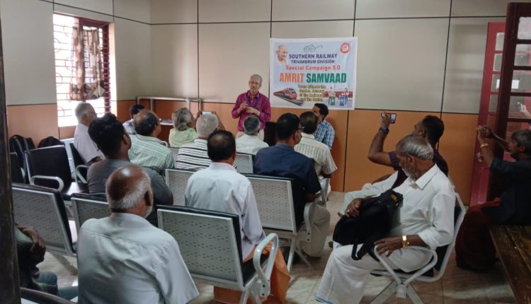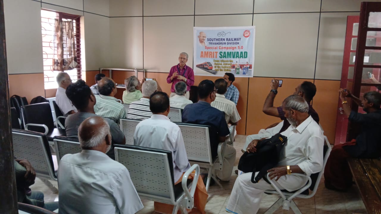 Thiruvananthapuram Division, Southern Railway conducted the Amrit Samvaad – an interactive session between passengers and railway officials – at Chirayinkeezh Railway Station on Monday, 27th October 2025, under the Special Campaign 5.0. The initiative aims to bring the Railway Administration closer to passengers and rail users through direct interaction and constructive feedback.