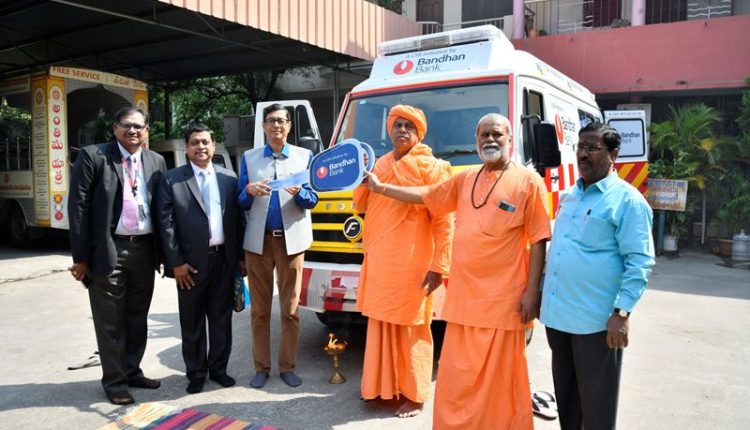 Secunderabad: Bandhan Bank, as part of its CSR initiatives, has donated 10 fully equipped ambulances across India, including one in Telangana, to strengthen emergency medical access and improve healthcare delivery across diverse communities. Announced during the Bank’s 10th Foundation Day celebrations, the initiative has now been implemented with the donation of ambulances. The initiative reflects the Bank’s commitment to improving the reach and responsiveness of healthcare services, ensuring that patients receive timely medical attention during emergencies. The ambulance was formally handed over to Bharat Sevashram Sangh, Secunderabad, in the presence of Mr. Santanu Mukherjee, Independent Director, Bandhan Bank. Swami Munishwaranandaji, Secretary, Bharat Sevashram Sangha and Swami Venkateshwaranandaji, Assistant Secretary, Bharat Sevashram Sangha and other dignitaries were present on the occasion.