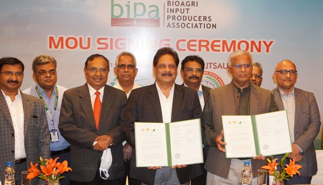 Hyderabad: Bio Agri Input Producers Association (BIPA), a Hyderabad based not for profit industry body  working towards the use of biological technology for sustainable Agri in India and across the globe signed two separate MoUs (Memorandum of Understandings). One is with National Institute of Agricultural Extension Management (MANAGE) and the other one is with The Professor Jayashankar Telangana State Agricultural University (PJTSAU). These were signed in a special function held on Saturday late evening in Hotel Park Hyatt, Hyderabad.