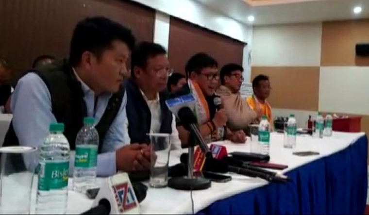 Guwahati : The BJP is having a tough time in Arunachal Pradesh as two Ministers and six MLAs on Monday joined the National Peoples Party (NPP) and will contest in the Assembly election due next month.Amongst them. the state home minister Kumar Waii and tourism minister Jarkar Gamlin while the six legislators were denied tickets by the BJP.“We will not just fight the elections but will form an NPP government in the state,” Waii vowed after joining the party. Besides the eight BJP MLAs, a legislator of the Peoples Party of Arunachal (PPA) and 19 other saffron party leaders also joined the NPP.The NPP, which is ruling Meghalaya along with the saffron party as an alliance partner, has decided to field 40 candidates in the Arunachal Pradesh assembly polls which will be held simultaneously with Lok Sabha elections in the state.The NPP will go it alone in the poll but NPP state unit spokesperson Mutchu Mithi, however, said the party might go for post-poll alliance if required. The party may field candidates in the Lok Sabha seat also.
