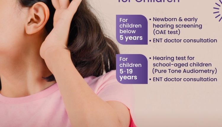 For children below five years, OAE (Otoacoustic Emissions) screening along with ENT consultation will be provided. For school-going children between 5 and 19 years, Pure Tone Audiometry and ENT consultation will be offered at Free of cost.
