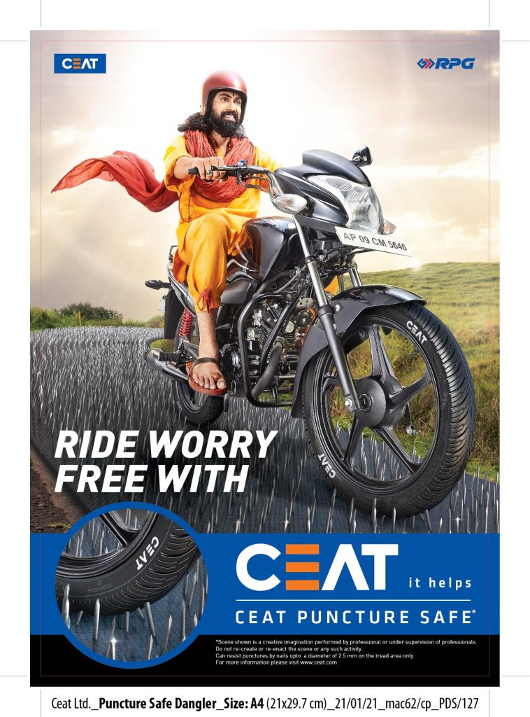The campaign based on the theme ‘CEAT Puncture Safe Sealant technology’ highlights the safety and convenience even while riding on a difficult terrain. Created by O&M, the campaign, is based on an interesting storyline set in the ashram of ‘keel wale baba’ portrayed by Rana Daggubati, living on a bed of nails. On being invited to visit a village by some followers, baba is seen riding out from his ashram on a nail clad floor without being overly worried about punctures which is the highlight of the puncture safe tyres. The idea is to propagate the innovative initiative from CEAT that brings in convenience of worry-free rides even in difficult riding terrains.