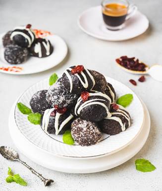 Chocolate bliss balls with dried cranberries