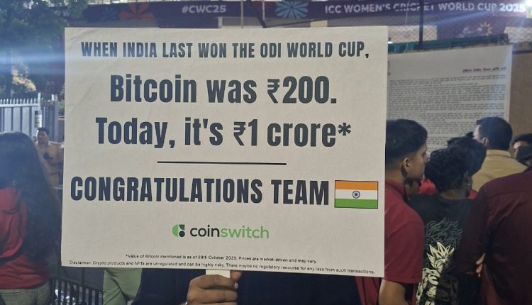 “When India last won the ODI World Cup, Bitcoin was ₹200. Today, it’s ₹1 crore.”