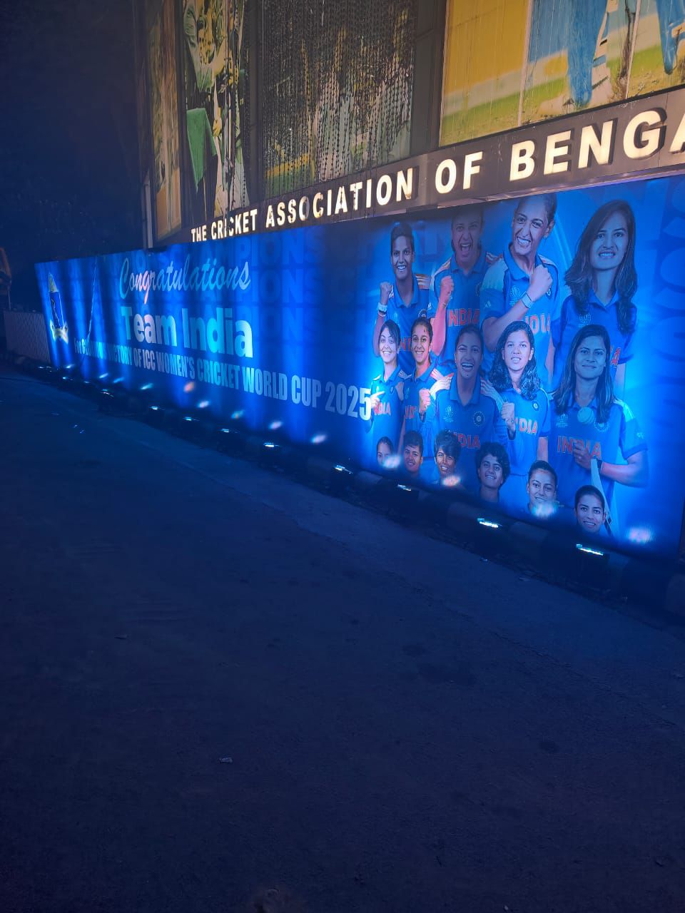 The front façade of the stadium was adorned with striking visuals of the victorious Indian team, bathed in radiant blue lights to reflect the spirit of pride and achievement. The decoration stood as a tribute to the women’s team’s remarkable performance, which brought immense glory to the nation and inspired millions of aspiring cricketers.