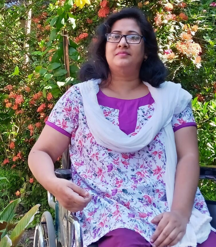 Juwala Borah , a talented young writer who has been on wheel chair for the last twenty six years after her spinal chord was seriously injured in an accident at an early age of fourteen years . Juwala so far has three published books to her credit . Her first book titled “Bedanar mitha madakaota” , a collection of poems was published in 2013 while she published her autobiography “Moi jantranak joy korar pon loiso ” in 2016 .  In the year 2020 she published her third book,  a novel titled ” Mounatar kolahol ‘ .