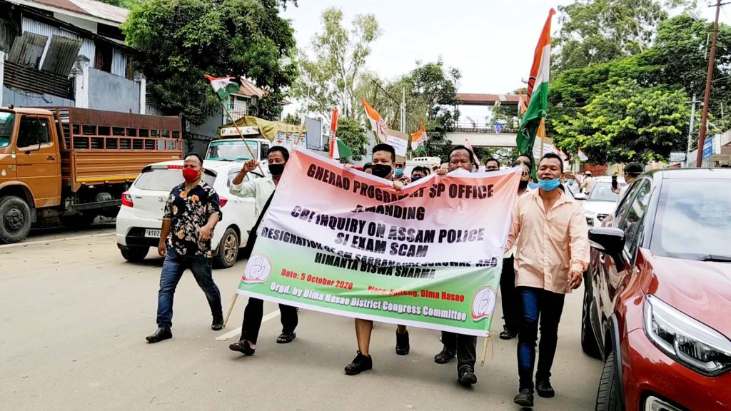 Haflong : Demanding CBI enquiry on Assam Police SI Exam Scam and resignation of Chief Minister Sorbananda Sonowal and Himanta Biswas Sarma the Dima Hasao District Congress Committee organised a SP Office gherao programme today at Haflong.