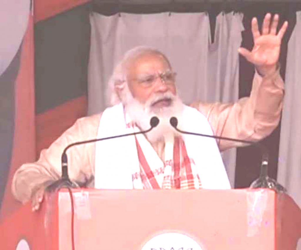 GUWAHATI : The bugle of assembly elections in five states of the country is over. In Assam, the party is putting its full emphasis on securing the BJP victory in the assembly elections 2021. Prime Minister Narendra Modi today promised the people of Assam for sustainable and intensive development of the state. Addressing an election meeting in southern Assam, Mr Modi said, the Barak Valley was the gateway to Assam in one era but assam was exposed to corruption and corruption in the previous Congress governments. He said the BJP governments of the centre and the state have made all efforts to restore this link. He said, if the BJP comes to power again in the state after the forthcoming challenges, these efforts will be intensified.