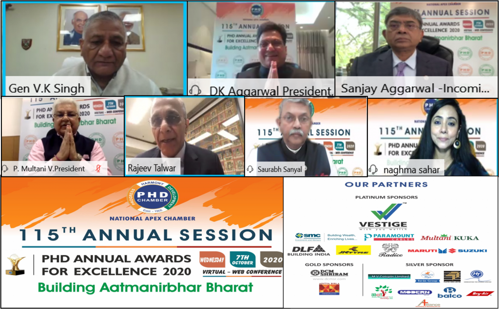 Dr DK Aggarwal, President, PHD Chamber, in his presidential address for the 115th Annual Session, said that Atmanirbhar Bharat is about self- reliance, self- sufficiency and self-sustenance. He said that, at this juncture, our country needs to strengthen manufacturing sector, increasing the competitiveness in domestic manufacturing, focus on supply chains, among others. Further, he was of the view that MSMEs are the growth engine of economy and with recent bolstering reforms by the Government MSMEs will be strengthened in times ahead.