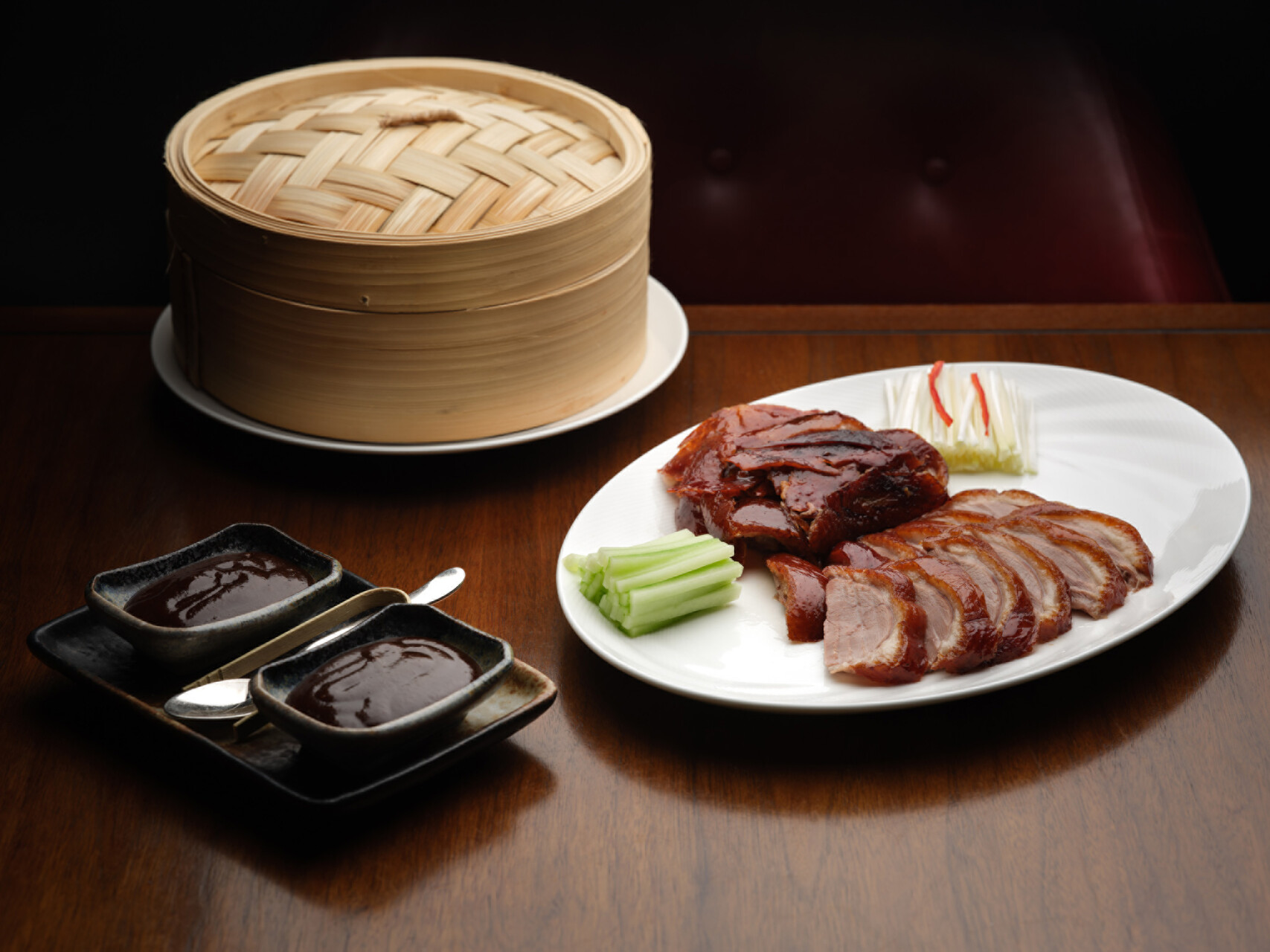 Under the direction of celebrated Chinese Chef Wong Chin Sheong, the showcase resurrects techniques born in the guarded kitchens of the Ming Dynasty and refined through generations of Cantonese mastery. At its ceremonial core lies The Master’s Carve, a tableside ritual wherein Chef Wong unveils the coveted “Lacquered Gold” finish, an amber-glazed skin of extraordinary translucence and delicate crispness achieved through centuries-old roasting methods.