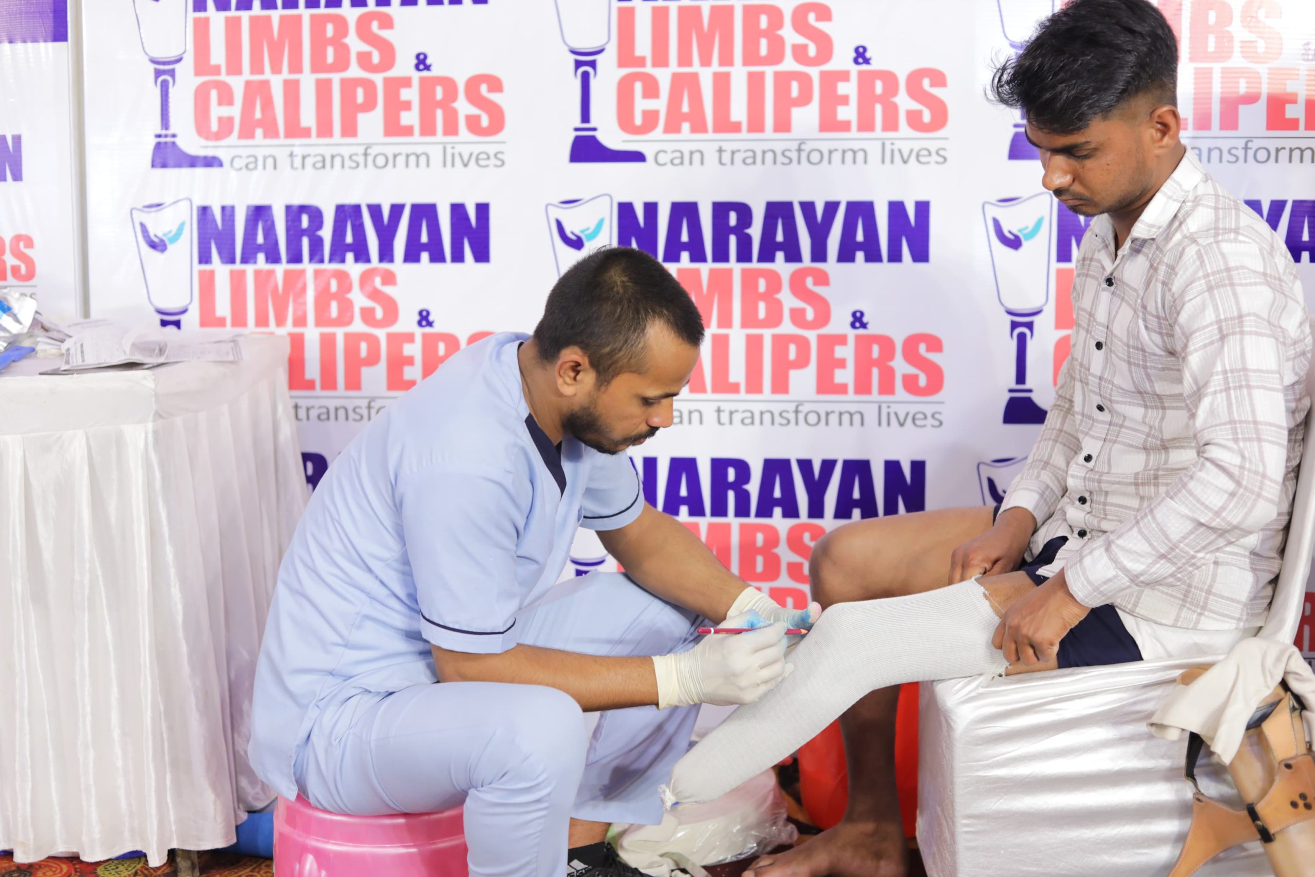 A total of 598 persons with disabilities from different regions attended the camp. The institute’s team of expert doctors and P&O specialists examined all participants. Among them, measurements were taken for Narayan Limbs (artificial hands and legs) and calipers for 226 individuals, while 108 patients were selected for surgical procedures.