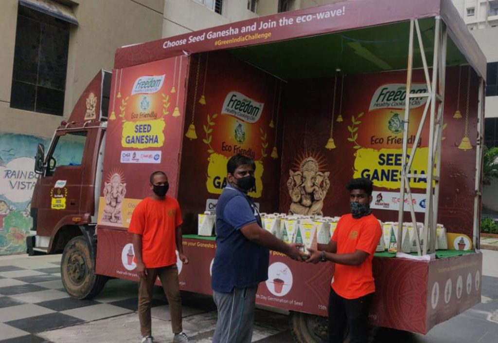 Speaking about the initiative Mr. P Chandrashekhara Reddy Vice President, Sales & Marketing, Freedom Healthy Cooking Oils said, “It is a part of our tradition to celebrate the Ganesh festival by placing the idol of Lord Ganesha in our homes. To help people celebrate the festival with traditional fervor during the COVID-19 pandemic and protect the environment, Freedom Healthy Cooking Oils has decided to distribute nearly 5000 eco-friendly Seed Ganesh idol in the city. We request the people to celebrate the Ganesh festival at their homes and immerse the idols in a pot so that the seed embedded Ganesha can grow into a plant. May your family be blessed with good health and better immunity this Ganesh Chaturthi. “