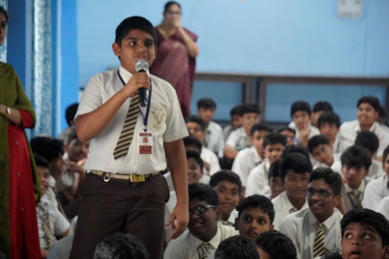 In an engaging session for classes 7 and 8, Dr Srirang Abkari explained the fundamental steps and mechanisms of CPR. He guided students through the correct hand placement, the ideal rate of compressions (100–120 per minute), and the standard compression-to-breath ratio (30:2). He also highlighted crucial safety considerations to keep in mind before performing CPR.