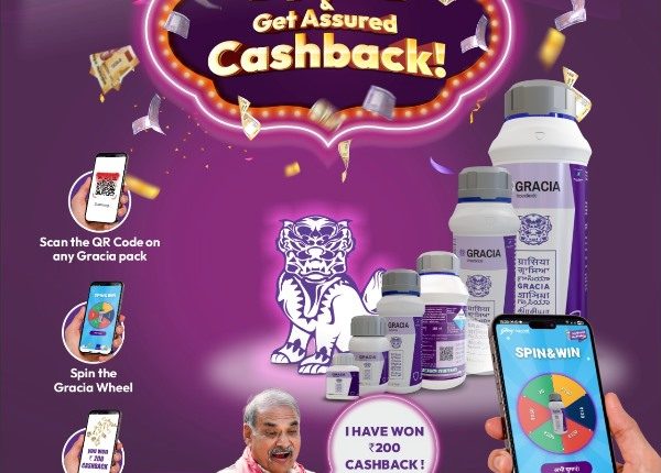 Farmers across the country who purchase Gracia can participate by scanning the QR code on the bottle and verifying their mobile number via OTP. After selecting their state, district and crop, they need to spin a virtual bottle to win a cashback of up to INR 200. In order to avail their cashback, they need enter their mobile number linked to their bank account for instant transfer.