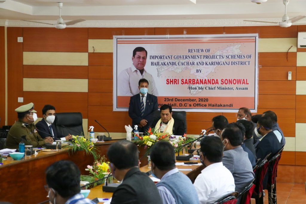 GUWAHATI :The Assam Chief Minister Sarbananda Sonowal reviewed the government schemes and projects with Deputy Commissioners of Hailakandi, Cachar and Karimganj at Hailakandi on Wednesday. Reviewing various government schemes and projects, Chief Minister Sonowal asked the deputy commissioners to develop a robust work ethic in implementing central and state government schemes, tour the districts extensively, address people frequently and adopt a rigorous working style to pass on the fruits of good governance to the people of the state. The Chief Minister instructed the DCs and APDCL officials to ensure uninterrupted and quality power supply to the people while reviewing the Saubhagya scheme. “Ensuring regular power supply is the greatest service to the people” he said while taking stock of the power scenario of the three districts of South Assam Barak Valley.