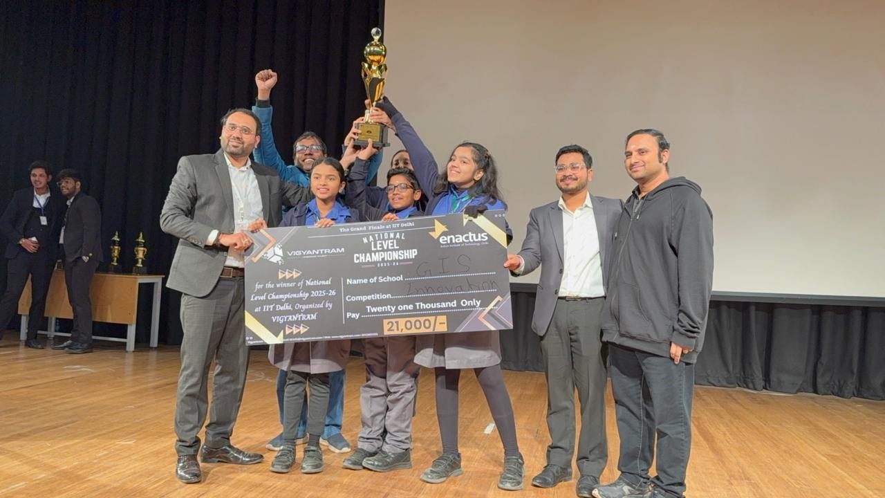 Team RoboHolics@GIS from Class VII, Adithya Jayaraman, Luckshana S, Saanchi Rai, Satvi Gupta, and Vedanshi Shikar Raj took top honors in the Innovation category at the Vigyantram National Robotics Championship 2025-26 (IIT Delhi, January 11-12). Their creation, ‘MyBuddy’, stood out as the finest among 26 teams nationwide. Fellow Class VI team Roboraptors, Rishaan Thakur, Dhruba Sai Vyukuntam, Tatya Vemulapalli, and Arjun Abhijeet Bhatt earned Best Innovative Idea in Medical Technology there too.