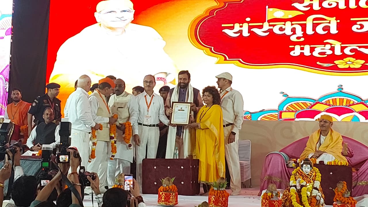 Haryana Chief Minister Shri Nayab Singh Saini said it is a matter of great pride to honor the distinguished personalities who are working to carry forward the country’s rich cultural heritage. He expressed deep reverence for Param Pujya Maharajshri Ji, acknowledging his remarkable contributions in the fields of spirituality and public service. “I bow to Param Pujya Maharajshri Ji for his tireless work in awakening spiritual consciousness and serving humanity,” the Chief Minister said while addressing the Sanatan Sanskriti Jagran Abhiyan.