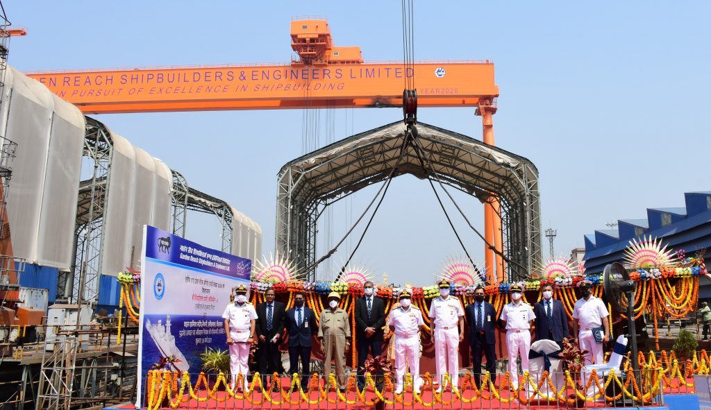 The contract for construction of three Stealth Frigates under Project 17A is the largest ever order awarded to the shipyard by the Ministry of Defence with a value of over Rs.19293 crores. The shipyard despite all challenges amid Covid – 19 pandemic, launched 1st ship of P17A Stealth Frigate “INS Himgiri” ahead of schedule on 14 Dec 20. The Keel laying of Yard 3024 has also been achieved ahead of schedule. It is important to note that the Keels for both 1st & 2nd ships viz, Yard 3022 and Yard 3023 were also laid ahead of schedule on 10 Nov 18 and 24 Jan 20 respectively.