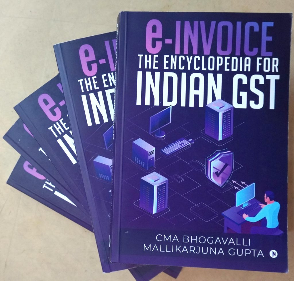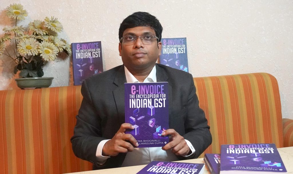 Hyderabad: Hyderabad based Cost and Management Accountant(CMA), Bhogavalli Mallikarjuna Gupta authored “e-Invoice–The Encyclopedia for Indian GST” is unveiled here in the city today. GST Commissioner Dr. Purushotham, Principal Commissioiner, Hyderabad Commissionerate unveield the book on Wednesday in his chambers at Basheerbagh.