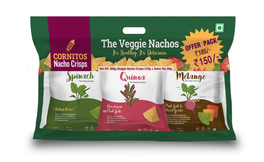 New Delhi: This festive season, celebrate with Cornitos a made in India nachos brand that brings Veggie Nachos Combo Pack with a free Salsa Dip for this special occasion. Veggie Nachos combo pack includes healthy variants of Spinach, Quinoa, and Melange nacho crisps combined with free Salsa Dip which will make your celebration extra special.