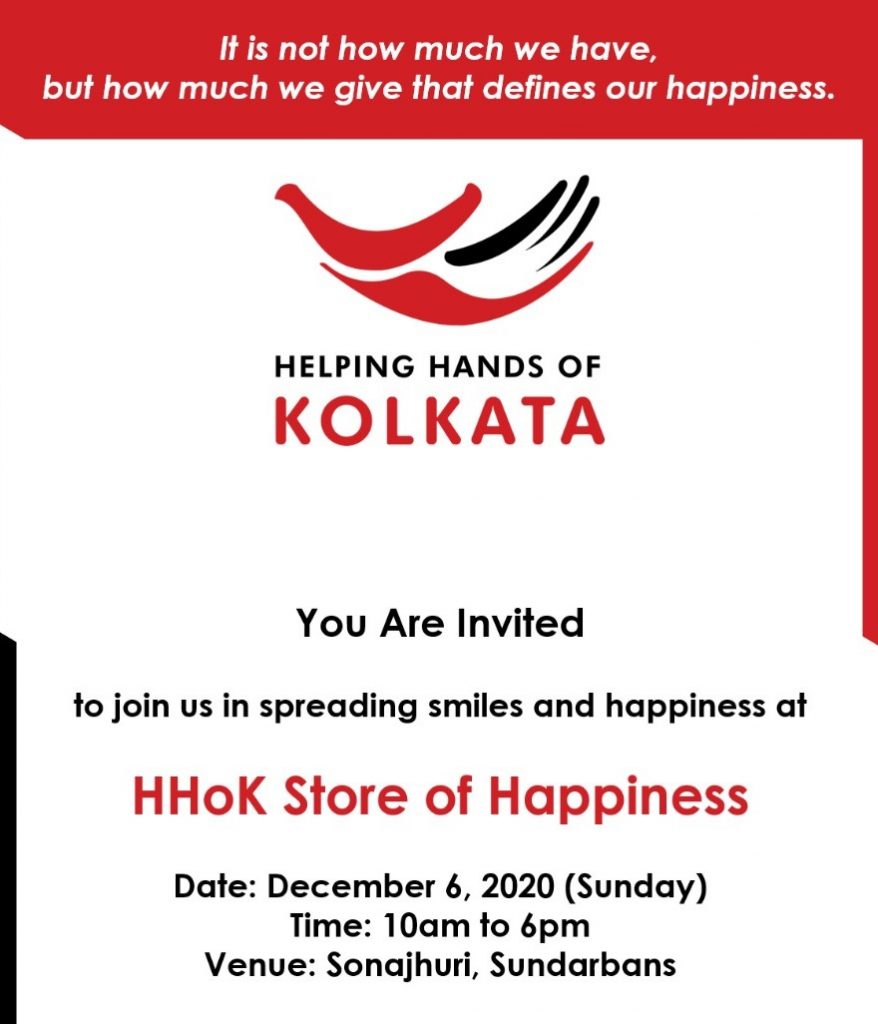 Helping Hands of Kolkata (HHoK) – a social impact group setup by individuals from the ‘City of Joy’ – are organizing a “Store of Happiness” at Sonajhuri village in Sundarbans. The Sundarbans have always played a role of a shield for the rest of Bengal when it comes to cyclones, same was the case in Amphun too which lashed the state earlier this year, but this also takes a toll on the lives of the people from the region. With the ongoing pandemic and the lockdown that has been imposed because of it has impacted the lives of the people of Sundarbans in a major way. Through the “Store of Happiness” HHoK would like to bring in some joy in the lives of the 150+ people living in this village.