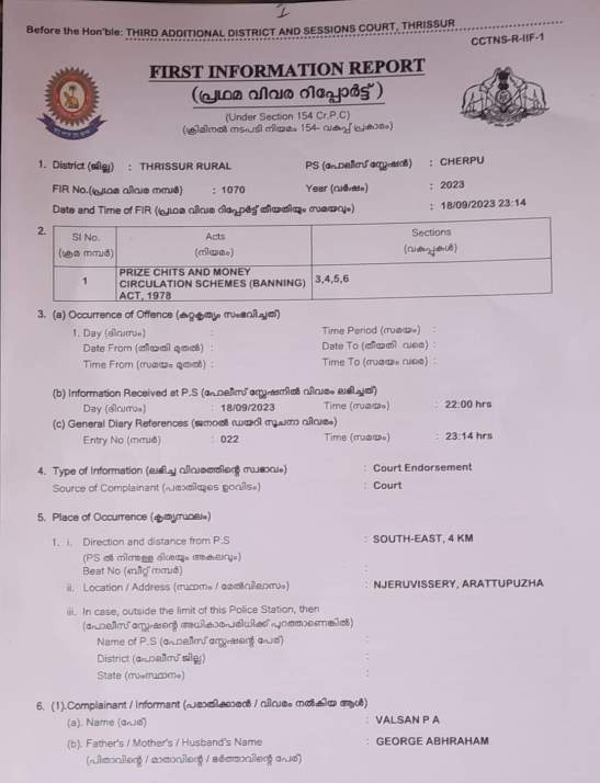 Another agent was heard commanding (in a voice clip) Highrich family members to “deal “with on Mr Valsan from Kozhikode who had filed a criminal complaint with the local court. Valsan is a retired IPS officer and on his complaint the court ordered an investigation into the frauds of Highrich. Based on the police report, the competent authority ordered attachment of the properties of the company, movable, and immovable. Complying the order District collector Thrissur has frozen the bank accounts of the company and its directors and also attached their properties, both movable and immovables.