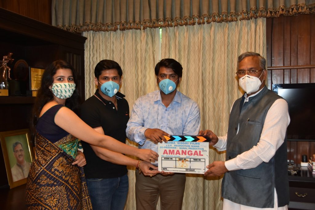 Muhurat clap of Horror movie “Amangal” performed by  honourable CM Trivendra Rawat , Uttarakhand along with director and actor Avinash Dhyani, actress Sanskriti Bhatt and Prashil rawat.  Produced by Padma Siddhi Films &  JSR production house, co-produced by Nahal Productions.Avinash Dhyani , Suruchi saklani and Sanskriti Bhatt are in the lead roles.
