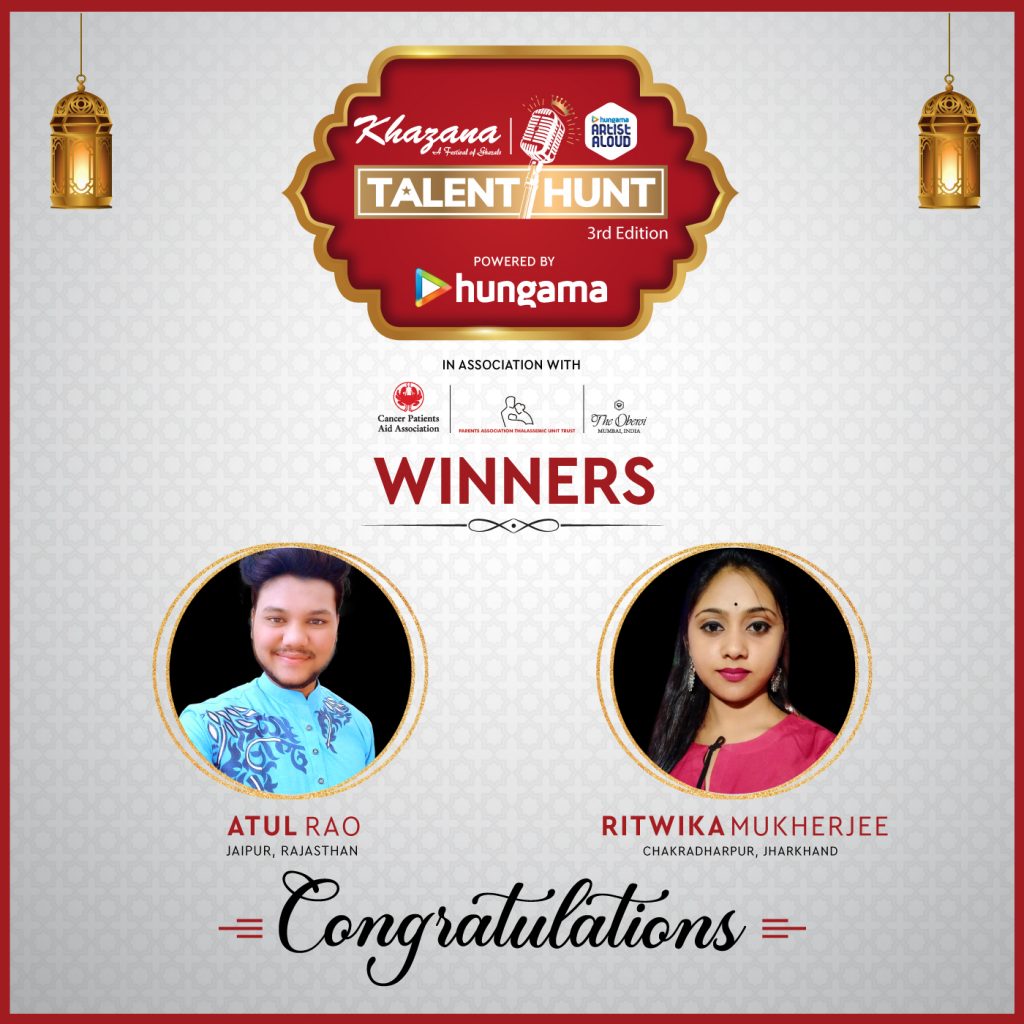 Hungama Artist Aloud, a platform that supports and promotes independent content, and Khazana, an annual concert that appreciates and celebrates the art of ghazals, announced the winners of the third edition of India’s first and only talent hunt for Ghazal singers – Khazana Artist Aloud Talent Hunt. 22 year old Ritwika Mukherjee from Chakradharpur (Jharkhand) and 20 year old Atul Rao from Jaipur (Rajasthan) were announced as the winners of this year’s contest and will soon be seen performing alongside Ghazal legends and judges – Pankaj Udhas, Rekha Bhardwaj, Anup Jalota, Talat Aziz and Sudeep Banerji at ‘Khazana – Festival of Ghazals’. Due to the pandemic and in order to ensure the safety of all artists, musicians, technicians and guests, this year Khazana will be a digital concert, available to stream across Hungama’s platforms.