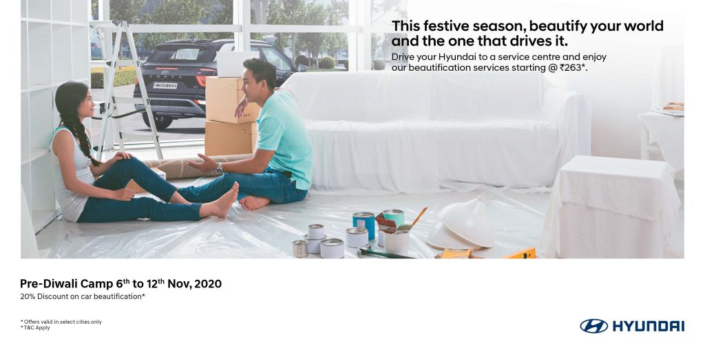 Mumbai: Hyundai Motor India Ltd, India’s first smart mobility solutions provider and largest exporter since inception, today announced a celebratory Pre Diwali-Camp with special service offers on car beautification for happy Hyundai customers.