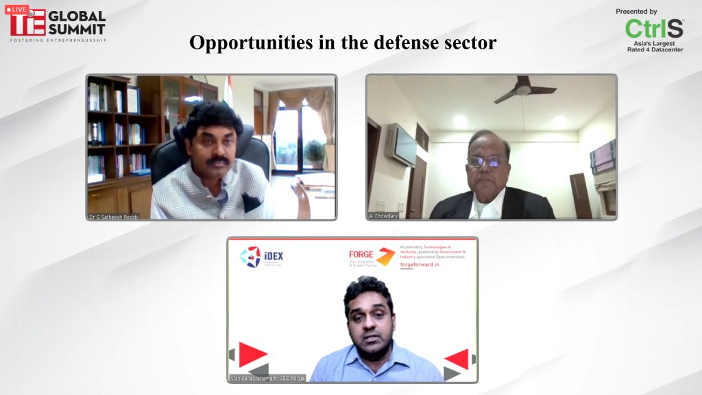 JA Chowdary Chairman, India Blockchain Standards Committee & General Partner, Succeed Innovations Fund moderated the discussion. The panellists include Dr. G. Sateesh Reddy, Secretary, Dept of Defence R&D and Chairman, DRDO and Vish Sahasranamam. Forge Forward – Incubator for Defense Tech