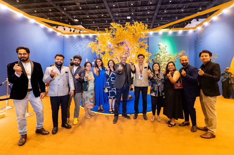 Further elevating the show was Indriya’s bold pairing of Polki with a captivating palette of rare gemstones including vivid tourmalines, deep tanzanites, rich sapphires, classic rubies and South Sea pearls. Even carved stones were layered with delicate “kissing” Polki elements, adding intimacy and dimensionality to each piece. This interplay of colour and light brought depth and individuality to every design, reinforcing the brand’s philosophy of jewellery as an experiential art to be experienced.