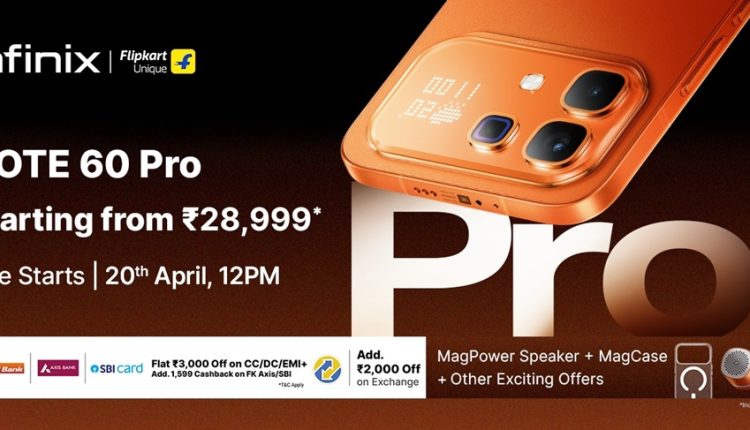 Infinix, a new-age smartphone brand, is all set to open sales for its recently launched NOTE 60 Pro on Flipkart and select retail stores starting 20th April, 2026. Designed for users who value expressive design and consistent performance, the device will be available at a starting offer price of ₹28,999 for the 8GB+128GB variant and ₹31,999 for the 8GB+256GB variant, inclusive of bank offers.
