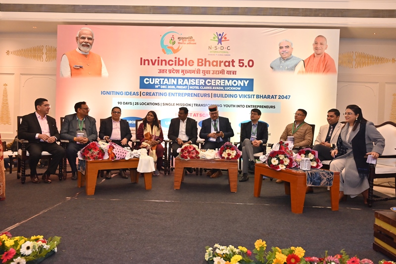 The inaugural programme in Lucknow marked the formal commencement of the Invincible Bharat 5.0 – Uttar Pradesh Mukhyamantri Yuva Udyami Yatra and saw the participation of senior officials from the Uttar Pradesh government, along with representatives from industry, banking, skill development institutions and the startup ecosystem. The event also witnessed the signing of key collaboration agreements aimed at strengthening access to finance, training support and market linkages for aspiring young entrepreneurs.