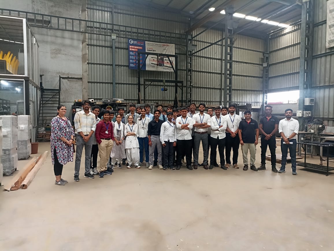 The Mechatronics Engineering Department students visited Grey Matters Robotics Pvt. Ltd. at Makarpura GIDC, Vadodara. The visit focused on 4-Axis Gantry Robots, robotic automation, and their integration in manufacturing systems. The 26 participating students enhanced their understanding of real-world robotics applications through interactive sessions led by industry experts.