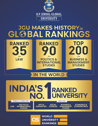 Professor Padmanabha Ramanujam, Dean of Academic Governance, added: “These rankings are a powerful testament to the strength, resilience, and dynamism of JGU’s academic ecosystem. Our rise into the top tier globally across disciplines, alongside being ranked #1 in India in multiple domains, reflects a deeply embedded culture of excellence and innovation. Above all, this milestone belongs to our students, faculty, and staff—their passion, hard work, and shared sense of purpose continue to drive JGU’s success and contribute to realising India’s vision of world-class universities that can compete with the very best globally.”