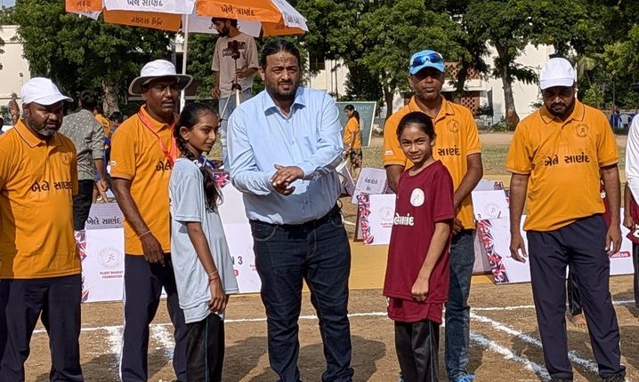The third season of Khele Sanand, the flagship grassroots initiative by Vijayi Bharat Foundation, officially commenced with a vibrant opening ceremony at the Sanskardham Campus. International Kho Kho players Pratik Waikar and Nirmala Bhati inaugurated the event, celebrating the league’s growing impact on youth development and community engagement across Sanand Taluka.
