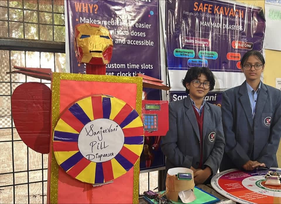 Lovely Bohra secured first place in the “Emerging Technologies” category with her project “Safe Kavach,” a model combining safety and modern technology to meet contemporary needs. Nidhi Sudhish also won first place in the “Health and Hygiene” category for her creative project “Pill Dispenser,” aimed at simplifying health management.